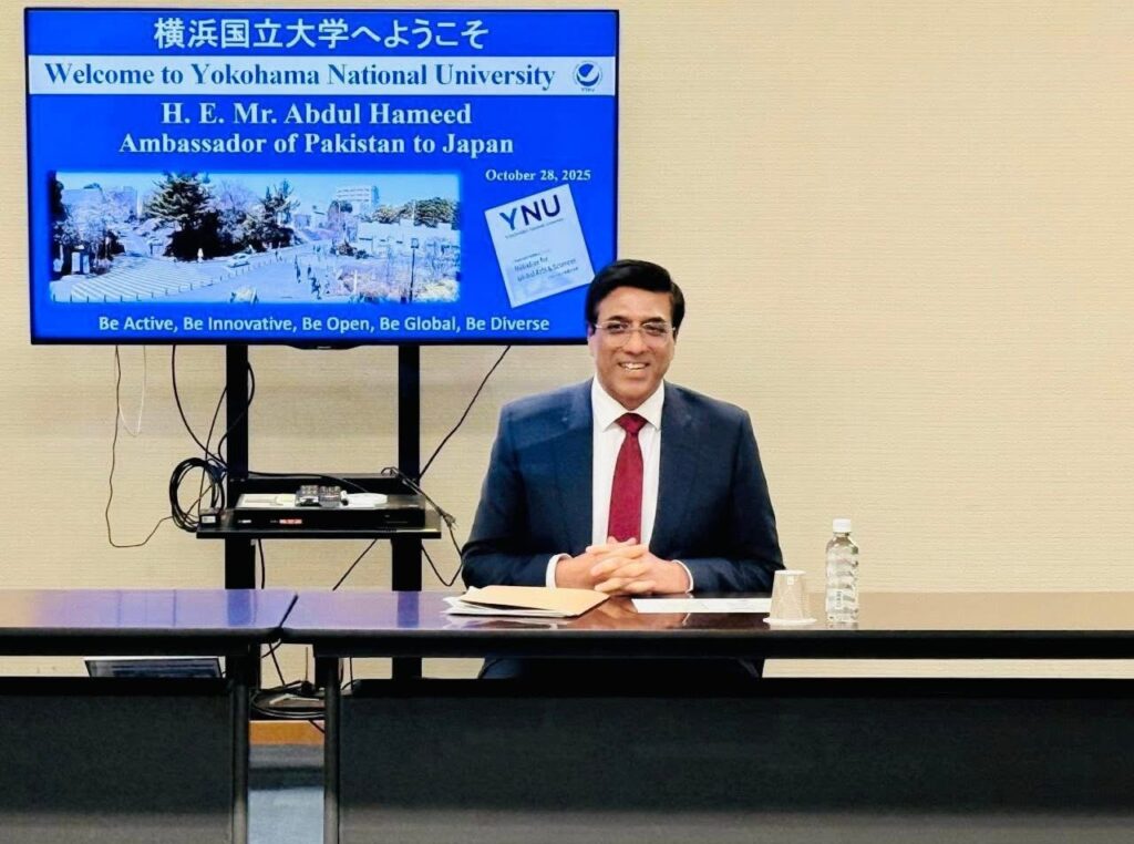 The discussions also covered enhanced collaboration between Pakistani and Japanese researchers in key global areas such as natural disaster reduction, renewable energy, and sustainable development. Ambassador Abdul Hameed appreciated YNU’s ongoing contributions in building academic bridges with Pakistan and underscored Pakistan’s commitment to deepening educational and scientific ties with Japan.