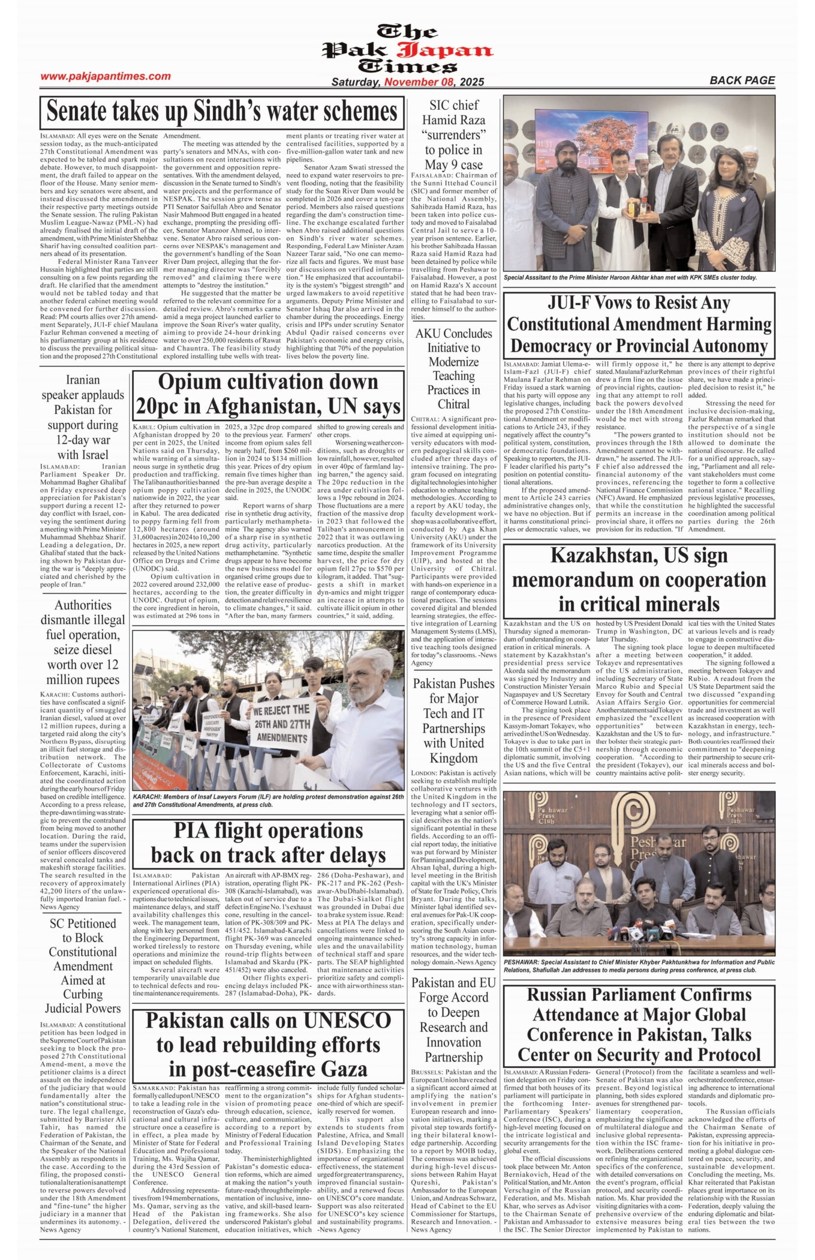 Cabinet delays meeting on 27th Amendment draft FinanceCabinet delays meeting on 27th Amendment draft Facebook Twitter Linkedin About The Author Latest Posts After Senate, 27th Amendment Bill sails through National Assembly with two-thirds majority Rising Standards of Medical Education and Healthcare in Pakistan Pakistan observes Allama Iqbal’s 148th birth anniversary Embassy of Pakistan in Tokyo Observes Iqbal Day with Distinguished Scholars and Students In meeting with Qatari emir, President Zardari pushes to expand defence collaboration Leaders Laud Tariq Puri’s Role in Promoting Pakistan–Japan Trade VIEW ALL POSTS BY Top Related News PML-N Japan Delegation Meets Ambassador Abdul Hameed in Tokyo PM Shehbaz vows to end polio in Pakistan as nationwide drive begins PM reaffirms Pakistan’s unwavering solidarity with Kashmiris One year in power: PM vows to eliminate terrorism to pave way for investment Dr. Farrukh Raza: Pioneering Progressive Policing in Karachi’s District East 9 terrorists Killed during security operations in North Waziristan: ISPR Embassy of Pakistan in Tokyo Observes Iqbal Day with Distinguished Scholars and Students PML-N Japan Holds Special Ceremony to Mark Youm-e-Takbeer Imran, Bushra convicted in £190m case: sentenced to 14 and 7 years, respectively Previous Post In meeting with Qatari emir, President Zardari pushes to expand defence collaboration Next Post Embassy of Pakistan in Tokyo Observes Iqbal Day with Distinguished Scholars and Students Leave a ReplyCancel replyYour email address will not be published. Required fields are marked *Comment * Name * Email * Website Save my name, email, and website in this browser for the next time I comment. Δ