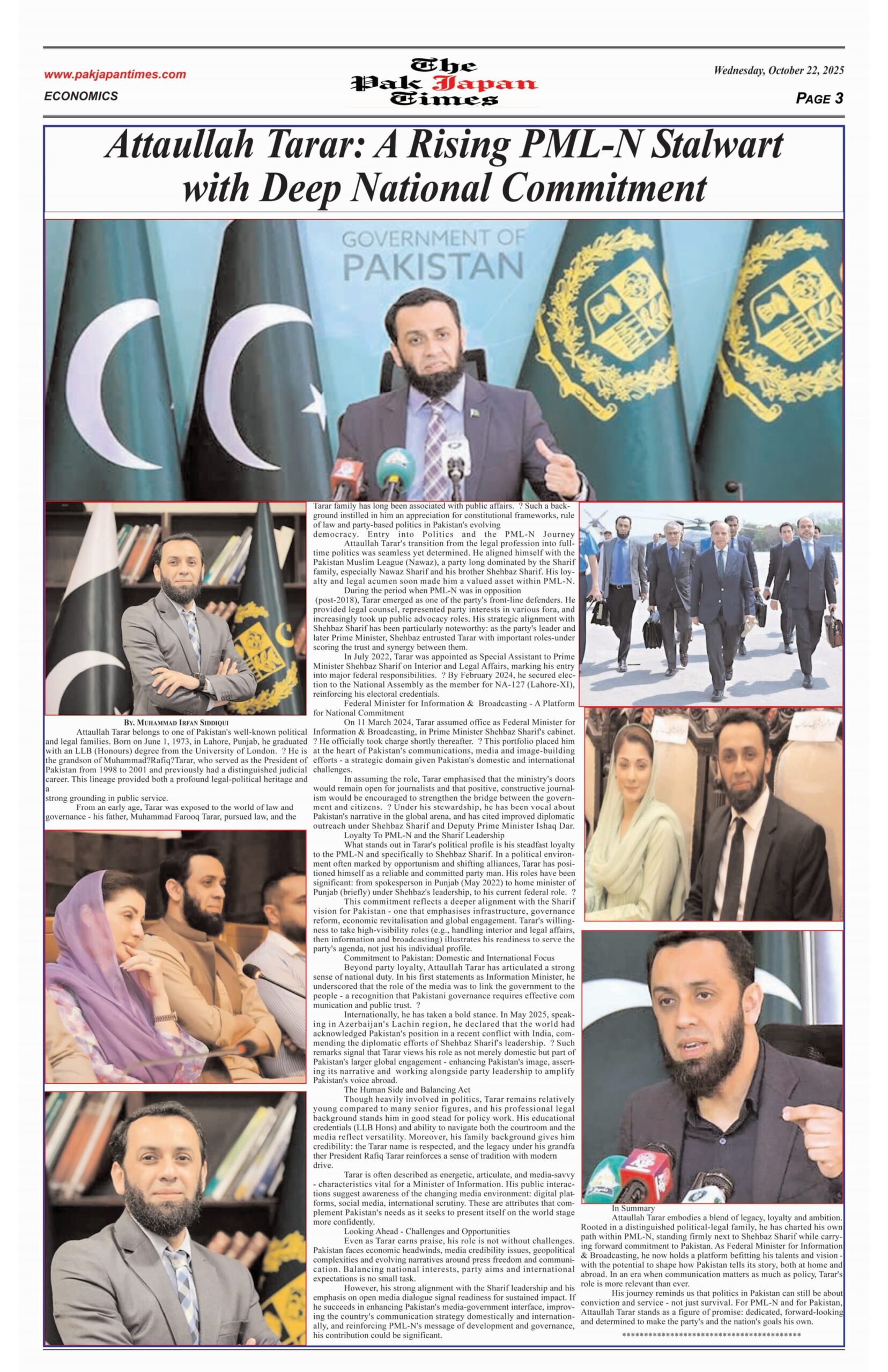 Field Marshal Asim Munir calls Balochistan “pride of Pakistan”, warns of Indian-proxies FinanceField Marshal Asim Munir calls Balochistan “pride of Pakistan”, warns of Indian-proxies Facebook Twitter Linkedin About The Author Latest Posts Attaullah Tarar: A Rising PML-N Stalwart with Deep National Commitment No room for hatred and terrorism in Pakistan, says PM Shehbaz Embassy of Pakistan Hosts Welcome Dinner for Pakistani Students in Japan Ambassador-Designate Abdul Hameed Meets President of SOKENDAI University to Discuss Academic Collaboration Pakistan, Afghanistan reach ceasefire agreement during Doha talks Memorial Prayer in Tokyo for Martyrs of Karsaz Tragedy Organized by PPP Japan, Mayor of Sukkur Syed Kumail Shah Attends VIEW ALL POSTS BY Top Related News President Zardari attends opening ceremony of Champions Trophy Gujranwala Business Centre Hosts Delegation to Explore Business Prospects with Japan Grand Dinner Hosted in Honor of Chaudhry Nasir Gujjar in Tokyo Global Inflationary Pressures Persist as Energy Prices Remain High Google’s Quantum Computing Breakthrough Could Change the Future of Computing ISPR DG dismisses rumours of Field Marshal Asim Munir becoming president PM Shehbaz orders further reduction in electricity rates Pakistan rejects India’s “Operation Sindoor” claims as baseless, provocative Siddique Palace: A Beacon of Pakistani Culture and Excellence in Japan Previous Post Attaullah Tarar: A Rising PML-N Stalwart with Deep National Commitment Leave a ReplyCancel replyYour email address will not be published. Required fields are marked *Comment * Name * Email * Website Save my name, email, and website in this browser for the next time I comment. Δ