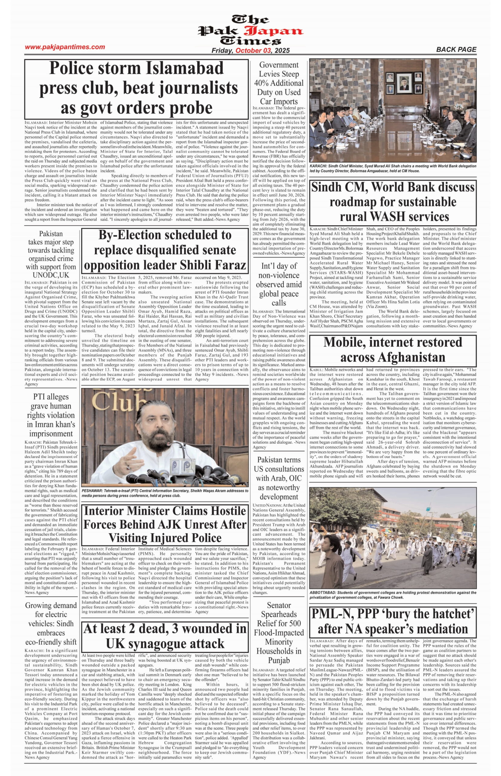 Pakistan cannot afford more errors, acting president warns, citing decades of suffering from past mistakes E-PaperPakistan cannot afford more errors, acting president warns, citing decades of suffering from past mistakes Facebook Twitter Linkedin About The Author Latest Posts Pakistan urges Nobel peace prize for trump following historic gaza accord Pakistan Achieves Historic Success at Expo 2025 Osaka Closing Ceremony PM Shehbaz praises army for “strong and effective” response to Afghan aggression Pakistan Wins Two Prestigious International Awards at Osaka Expo 2025 Failure to enforce National Action Plan is enabling surge in terrorism: DG ISPR Proposal for Recent Commercial Import Automobile Policy in Pakistan VIEW ALL POSTS BY Top Related News Press Conference by U.S. Citizen Muhammad Arif Mirza Against Illegal Land Occupation in Karachi: Appeal to Bilawal Bhutto Zardari Pakistan, Turkiye pledge to achieve $5bn bilateral trade target Acting Chairman Senate Syedal Khan Meets Former Senator Nawab Mohammad Ayaz Khan Jogezai in Quetta “Miscreants want bloodshed, not revolution”: PM Shehbaz on PTI protest Punjab presents Rs5.3tr “zero-tax” budget for fiscal year 2025-26 PM reaffirms Pakistan’s unwavering solidarity with Kashmiris PA opposition leader, PTI supporters sentenced in May 9 violence case Pakistani Trader Revolutionizing Crypto with High-Frequency Leverage Trading PM Shehbaz, President Putin share desire to bolster Pak-Russia bilateral cooperation Previous Post Top leadership to decide on deploying Pakistani troops for Gaza peacekeeping mission Next Post Pakistan Pavilion Sets Record at Osaka Expo 2025 Leave a ReplyCancel replyYour email address will not be published. Required fields are marked *Comment * Name * Email * Website Save my name, email, and website in this browser for the next time I comment. Δ