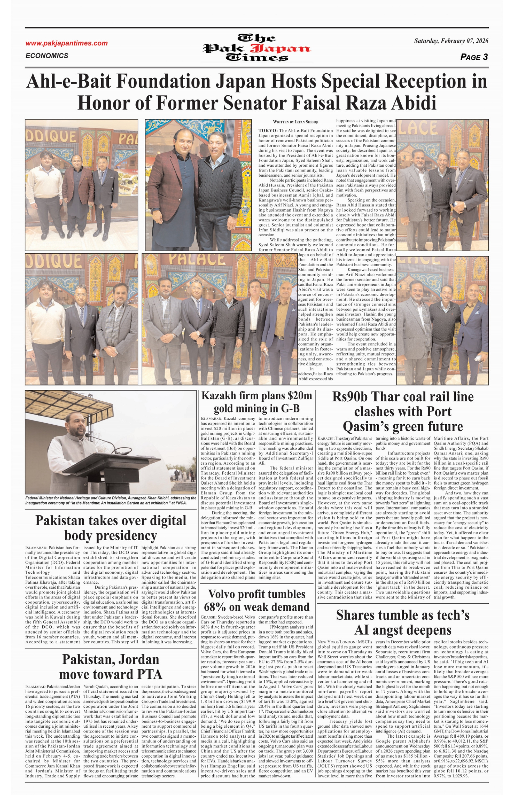 Pakistan, Uzbekistan sign joint declaration to expand strategic partnership NationalPakistan, Uzbekistan sign joint declaration to expand strategic partnership Facebook Twitter Linkedin About The Author Latest Posts Ahl-e-Bait Foundation Japan Hosts Special Reception in Honor of Former Senator Faisal Raza Abidi PM Sharif alleges “ideological coercion” and “repression” by India in occupied Kashmir OPF Board of Governor Hosts Dinner in Honor of Former Senator and Business Leader Faisal Raza Abidi in Tokyo Kashmir Solidarity Day Commemorated at Pakistan Embassy in Tokyo Pakistan, Kazakhstan sign 30-plus MoUs as Shehbaz seeks $1b trade target Discovery of USD 97 Trillion Rare Earth Mineral Reserves in Angola, Pakistan’s Faisal Raza Abidi Appointed Chief Consultant VIEW ALL POSTS BY Top Related News PM Shehbaz hopes for ‘encouraging’ results of Trump’s moot with Muslim leaders on Gaza to come soon PM Shehbaz receives Honorary Doctor of Philosophy from top Malaysian Unviversity Respect for Humanity: A Remarkable Gesture by the Japanese Prime Minister Govt announces Rs4bn for rebuilding of flood-hit GB infrastructure PM urges nation to strengthen parliamentary institutions Pakistan Wins Two Prestigious International Awards at Osaka Expo 2025 Another Mass Exodus from Gaza 1st round of meetings concludes as PTI-govt negotiations Kick off PM Shehbaz vows speedy rehabilitation in flood-hit KP Previous Post Ahl-e-Bait Foundation Japan Hosts Special Reception in Honor of Former Senator Faisal Raza Abidi Leave a ReplyCancel replyYour email address will not be published. Required fields are marked *Comment * Name * Email * Website Save my name, email, and website in this browser for the next time I comment. Δ