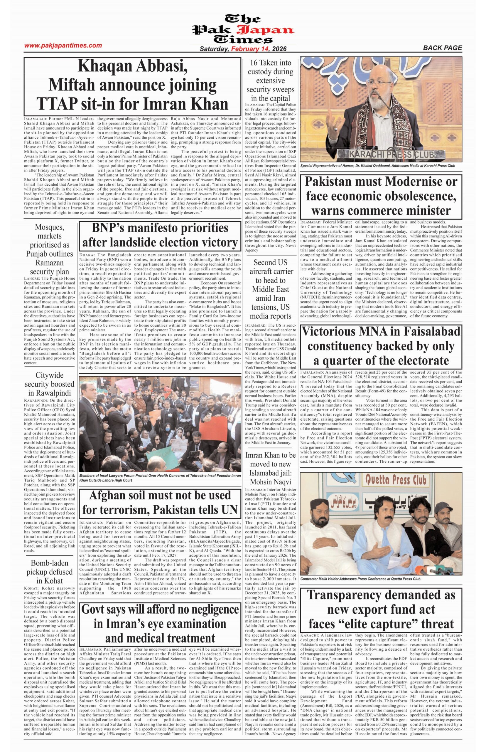 President Zardari, PM Shehbaz congratulate BNP on landmark election victory in Bangladesh NationalPresident Zardari, PM Shehbaz congratulate BNP on landmark election victory in Bangladesh Facebook Twitter Linkedin About The Author Latest Posts Greater Potential Exists to Strengthen Pakistan–Japan Trade and Investment Ties: Syed Feroz Alam Shah Ex-army chief Bajwa hospitalised after fall at home, confirms ISPR PM Shehbaz takes notice of Nepra’s new regulations abolishing net metering Waqar Zaka Wins Global Trading Competition During Severe Crypto Market Crash Pakistan, Uzbekistan sign joint declaration to expand strategic partnership Ahl-e-Bait Foundation Japan Hosts Special Reception in Honor of Former Senator Faisal Raza Abidi VIEW ALL POSTS BY Top Related News Former PML-N USA Vice President Malik Khaliq Awan Rebels Against Party Deputy Chairman Senate Praises Youthful Spirit at Ali Embroidery Mills International Junior Tennis Championship PM Shehbaz backs Iran’s right to “pursue nuclear technology for peaceful purposes” Omar Khan: A Trailblazer in Technology, Sports, and Business Greater Potential Exists to Strengthen Pakistan–Japan Trade and Investment Ties: Syed Feroz Alam Shah PTI’s dinal call’ still on: CM Gandapur in Mansehra ECP reserves verdict in K-P reserved seats case Pakistan says deal concluded with US on tariffs; Trump cites oil reserves agreement The real battlefield is intellectual Previous Post Greater Potential Exists to Strengthen Pakistan–Japan Trade and Investment Ties: Syed Feroz Alam Shah Leave a ReplyCancel replyYour email address will not be published. Required fields are marked *Comment * Name * Email * Website Save my name, email, and website in this browser for the next time I comment. Δ